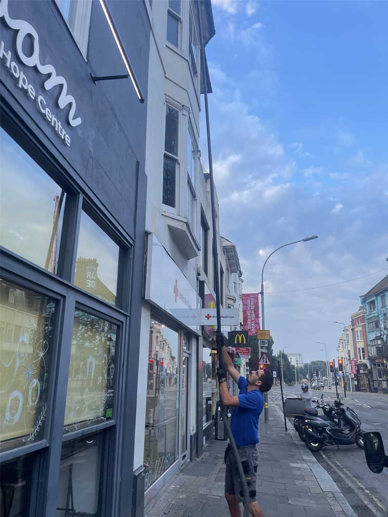 Window cleaning Professional window cleaning for residential blocks, commercial properties, and mixed-use buildings. We use purified water systems and long-reach equipment to clean windows, frames, and sills safely from ground level where possible, reducing disruption and access requirements.