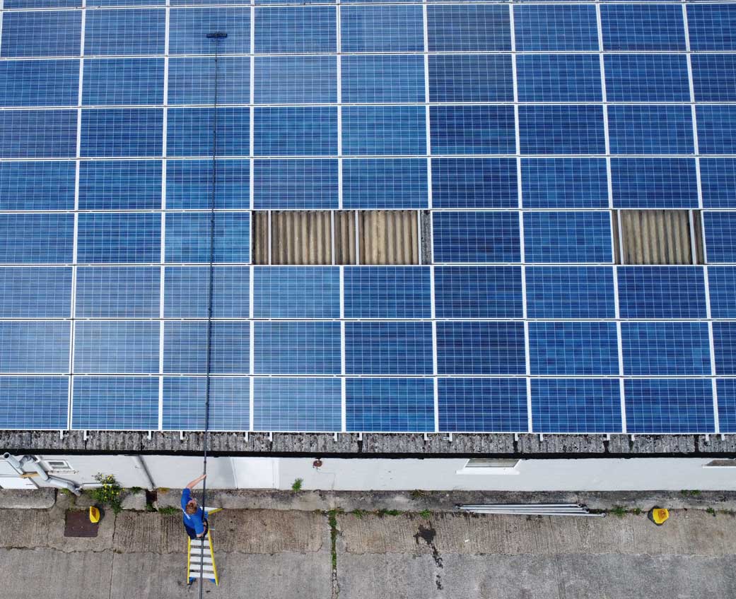 Solar panel cleaning Careful cleaning using purified water to remove dirt and debris without abrasive methods or chemicals, helping support panel performance while protecting frames and seals.