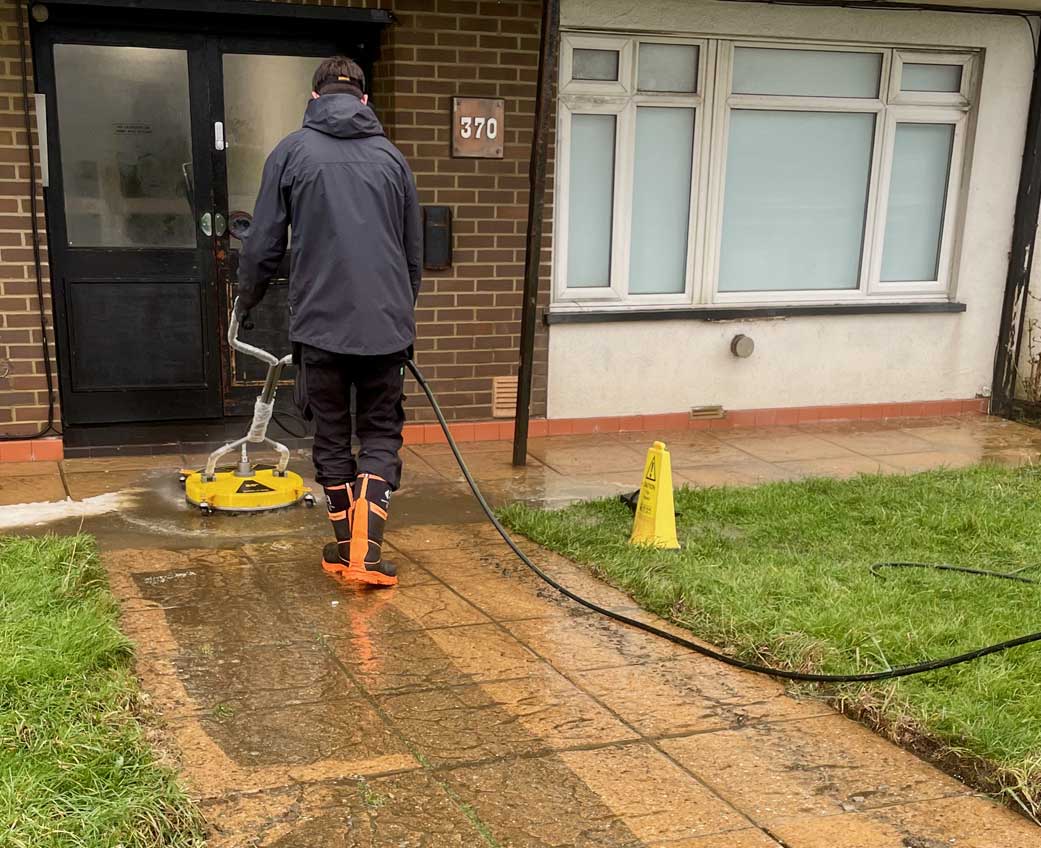 Jet washing and hard surfaces Cleaning of paths, forecourts, car parks and communal areas to remove algae, dirt and surface build-up, improving presentation and reducing slip risk.